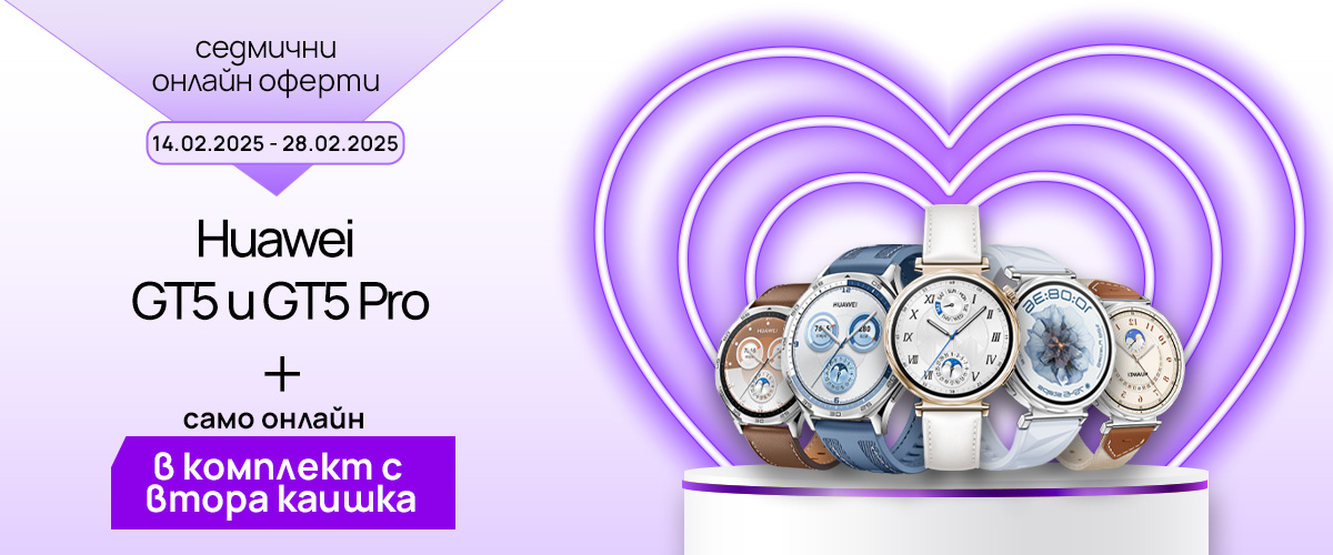 В месеца, посветен на любовта и здравето, Vivacom дава възможност на своите клиенти да се погрижат както за стила си, така и за активния си начин на живот. При онлайн покупка на смарт часовник от новата серия HUAWEI GT 5 всеки клиент получава подарък – допълнителна каишка. Сред впечатляващите устройства са: HUAWEI GT 5 PRO 46MM в черен цвят – мощен и елегантен аксесоар за динамичния мъж, HUAWEI GT 5 PRO 42MM в бяла керамика – стилно и иновативно решение за дамите, HUAWEI GT 5 41MM в златен цвят – за онези, които ценят класиката, и HUAWEI GT 5 41MM в синьо – модерен и свеж избор.