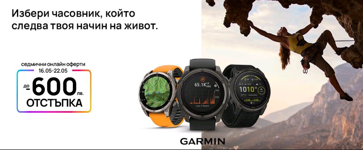 Включените модели в офертата – Garmin Fenix 8 47MM, Garmin Fenix 8 Solar 51MM и Garmin Fenix Enduro 3 51 MM – са сред най-иновативните устройства на марката. Garmin Fenix 8 47MM има ярък AMOLED дисплей, а Garmin Fenix 8 Solar 51MM и Garmin Fenix Enduro 3 51 MM са с MIP дисплей със соларно зареждане, което удължава живота на батерията до 48 дни. Смарт часовниците предлагат стотици спортни режими, включително за бягане, плуване, колоездене, силови тренировки, ски и много други. Часовниците имат дисплей от сапфиреното стъкло, което осигурява устойчивост на надрасквания в комбинация с непропускливи бутони за максимална издръжливост. Сензорният предпазител при серията Fenix 8 от своя страна позволява гмуркане до 40 метра под вода.