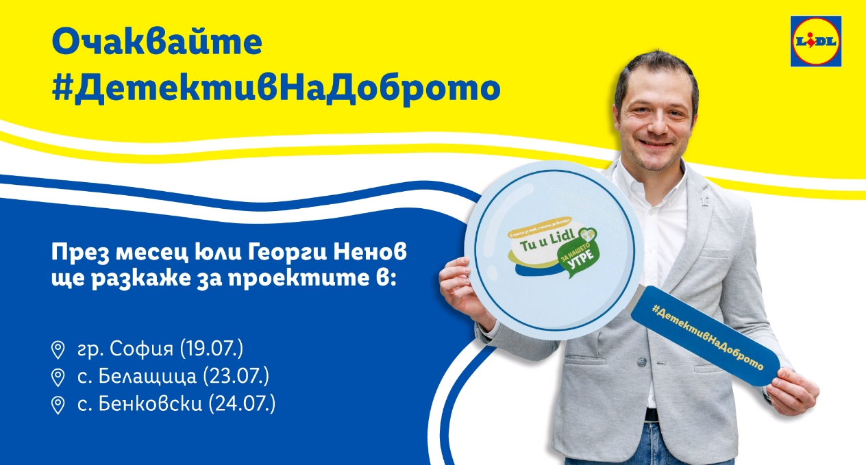 Посещението на Георги Ненов е част от мисията му на #ДетективНаДоброто – да представя вдъхновяващите проекти в седмото издание на инициативата „Ти и Lidl за нашето утре“. Той представя историите на хората, които реализират проекти във всички кътчета на страната на своята аудитория в социалните мрежи – FB, LI, IG.