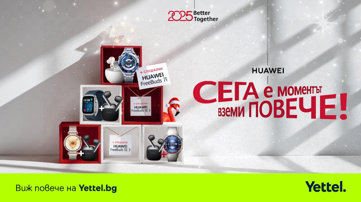 Коледа е време за подаръци, които носят смисъл, емоция и грижа, а тази година Yettel прави избора по-лесен от всякога. До 8 януари 2026 г. телекомът дава възможност за още повече изненади с празнични комплекти от Huawei. Някои от най-желаните модели смартчасовници на бранда идват в комплект с безжични слушалки, за да донесат не само коледна радост, но и много добавена стойност. Всички часовници и слушалки Huawei са съвместими с iOS и Android устройства, което ги прави универсален избор за подарък или мил жест към самите нас.