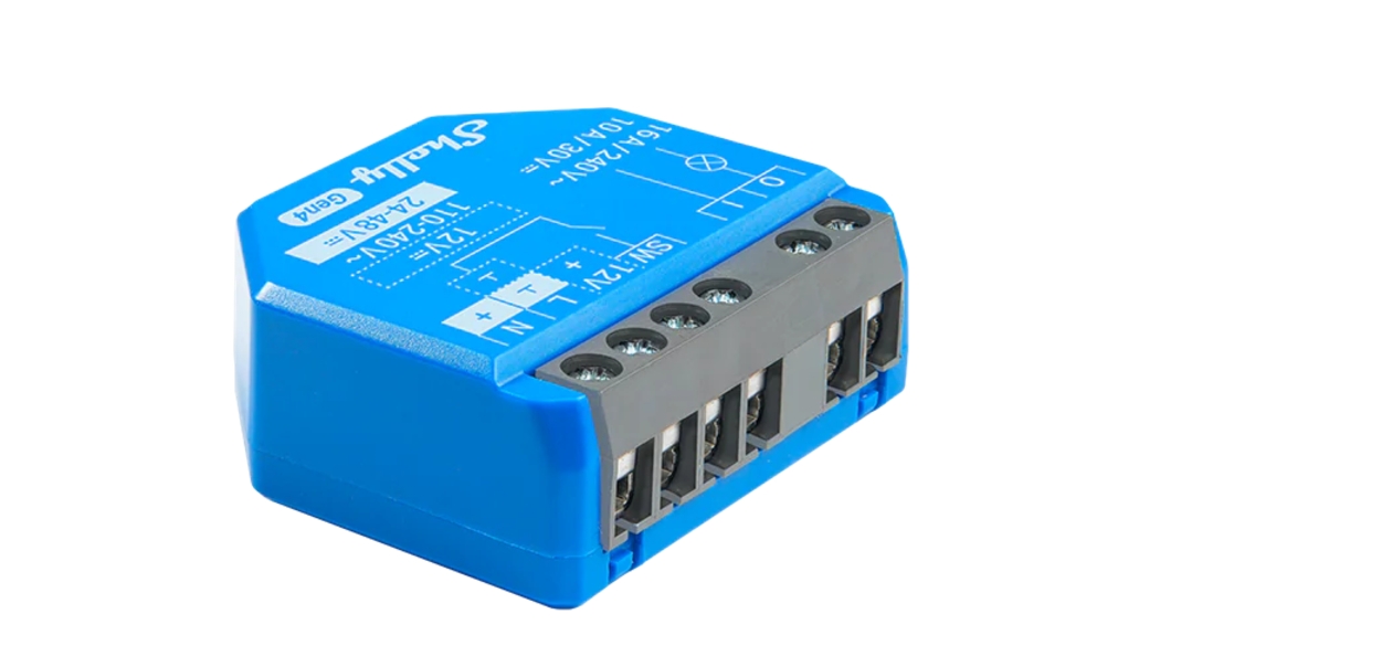 Следващо поколение интелигентно едноканално реле, оборудвано с по-мощен процесор за бърза реакция и мултипротоколна поддръжка. Устройството е Matter-сертифицирано, което гарантира пълна съвместимост с Apple HomeKit, Alexa и Google Home. Shelly 1 Gen4 се отличава със своите „сухи контакти“, поддържащи широк диапазон от ниско и високо напрежение. Компактният му дизайн е специално разработен за лесно вграждане зад съществуващи ключове и контакти, като разполага и с вграден температурен сензор за защита от прегряване.